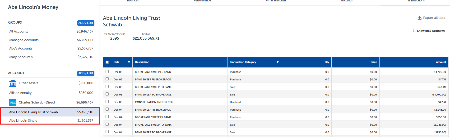 Clients of firms utilizing Blueleaf have access to a transaction log for all their accounts. In this article we discuss how to access this log and how you can filter/organize your transactions!